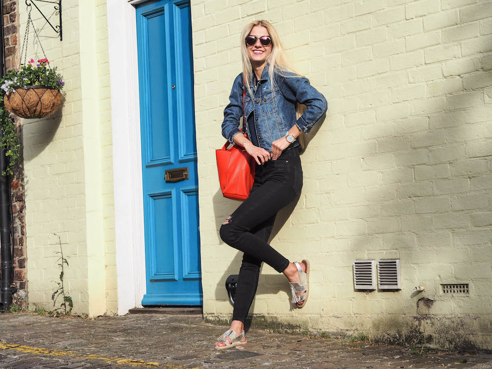This outfit is the last one we took pictures of with Julia in England. Moreover these are made in London in absolutely lovely little hidden street in Notting Hill! I am wearing my new favorite pieces I bought in Birmingham. Especially the denim jacket and metallic fringe sandals! I love to combine these two styles on the same scale as this season's trends. Each of them! Mainly I love the fact you can combine them all without fears as it all depend on you and your personality!
